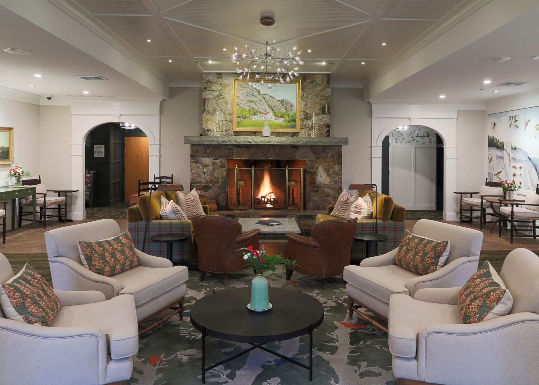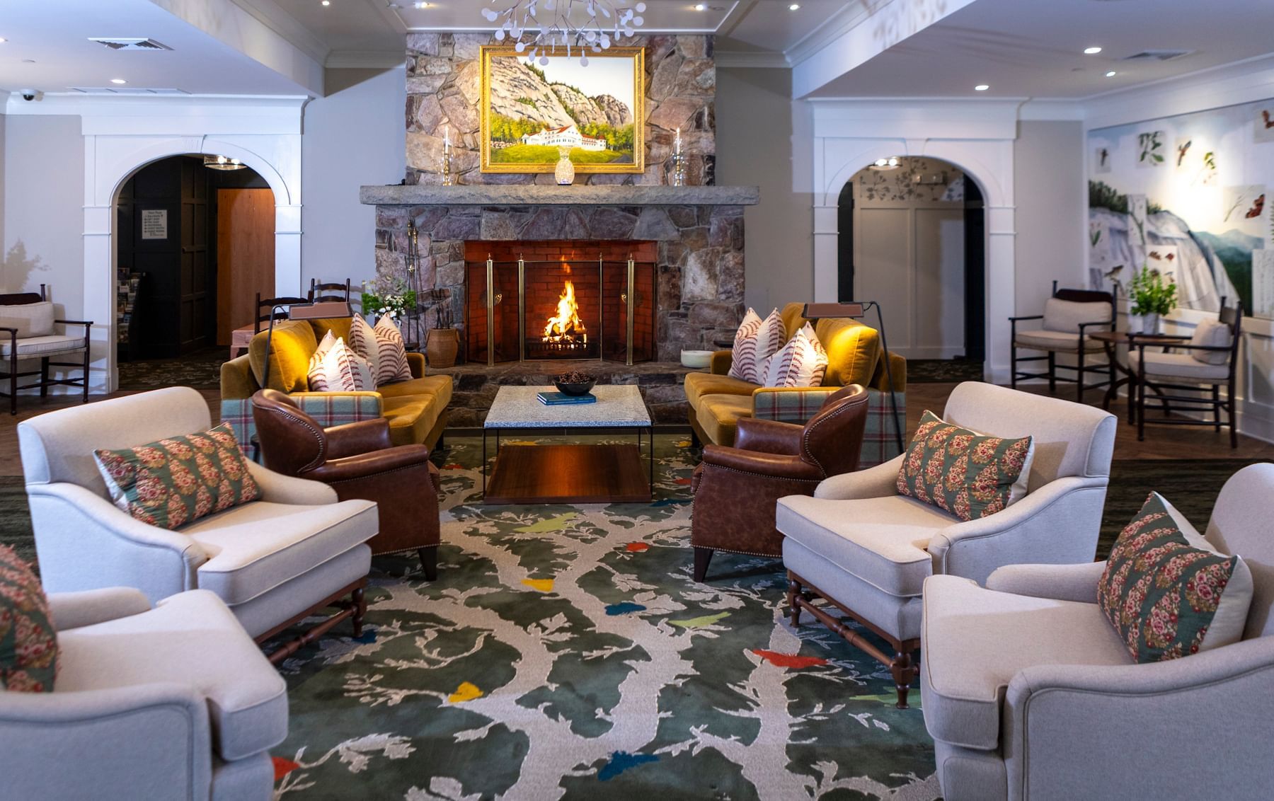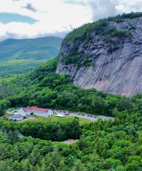 Surrounded by New Hampshire’s protected national and state forests, with stunning views from virtually every vantage point, our iconic mountain retreat offers serene seclusion framed by craggy cliffs draped with spruce, birch, and pine trees. We are truly “Your Escape from Everywhere" and yet are just minutes from the charming, historic downtown North Conway.