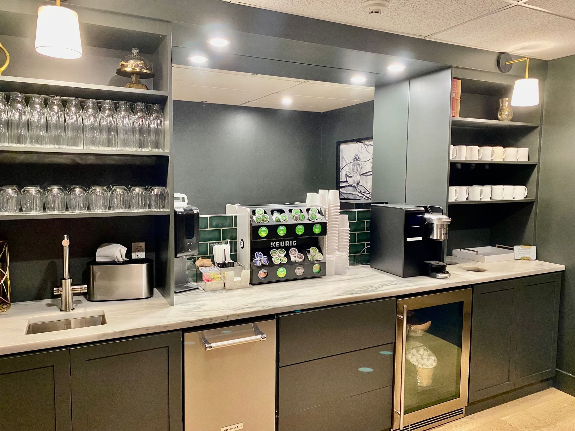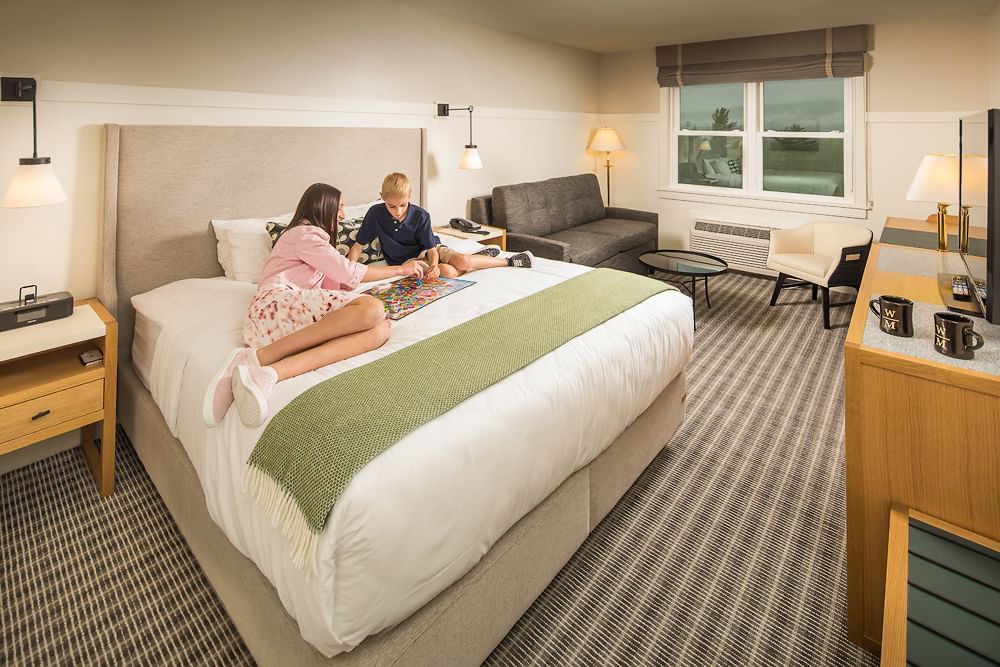 Full breakfast included. 300 sq. ft. featuring a king bed with Serta pillow-top mattress, high-thread-count linens, Anichini throw blanket, plush robe and slippers, flat-screen TV, digital alarm clock, high-speed wireless internet, multiple USB ports, in-room HVAC controls and refrigerator. The modern bathroom offers a walk-in shower, Speakman rain shower with handheld, eco-friendly Aveda amenities, make-up mirror and spa hairdryer. Access to 24-hour guest beverage pantry. Handicapped accessible rooms available, call to book.